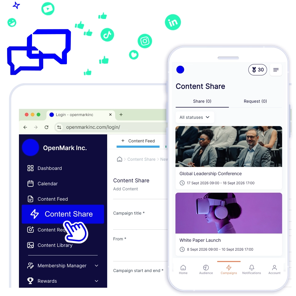 Activate employee advocacy, partner campaigns, and influencer marketing using your own rebrandable content-sharing technology.